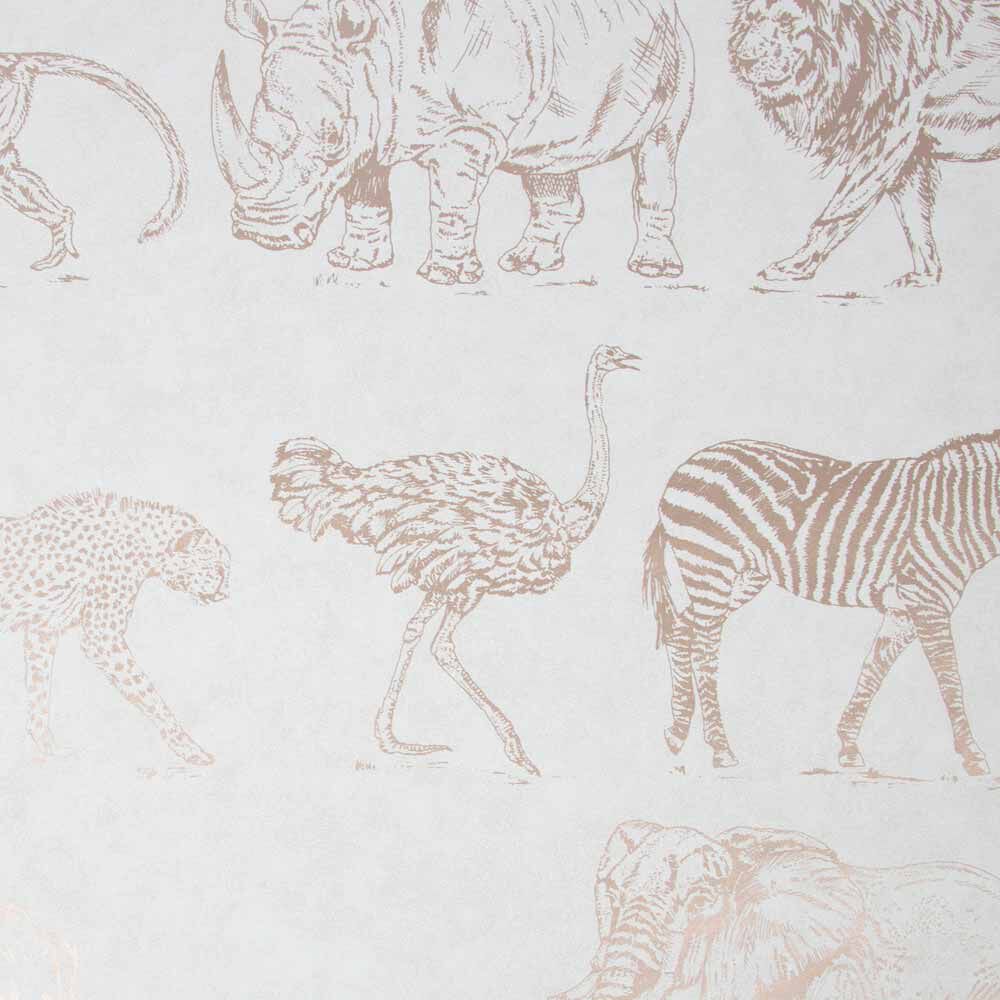 Ταπετσαρία τοίχου παιδική, σε κρεμ και ροζ χρυσές αποχρώσεις με εικονογράφηση ζώων της ζούγκλας