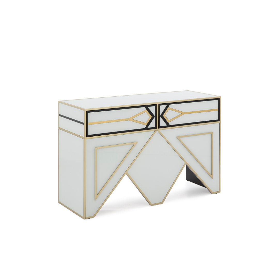 Κονσόλα παραλληλόγραμμη σε λευκό χρώμα με μαύρες και χρυσές λεπτομέρειες